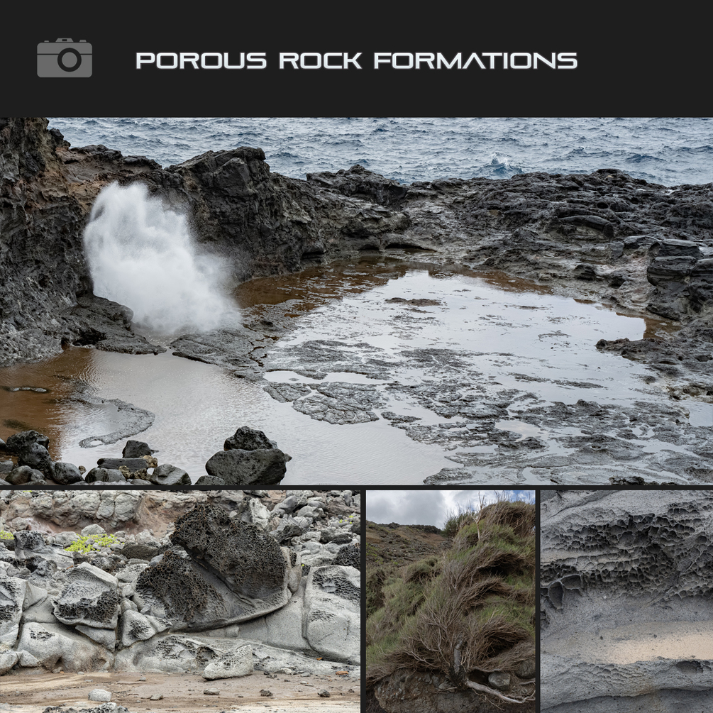 This is a royalty-free, high resolution pack with 124 photos. This landscape contains steep rugged coastal cliffs, tide pools, diverse lava rock formations, and rugged features.